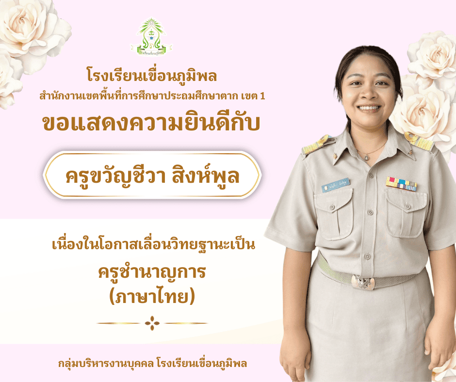 ขอแสดงความยินดีกับครูขวัญชีวา สิงห์พูล เนื่องในโอกาสเลื่อนวิทยฐานะเป็นครูชำนาญการ