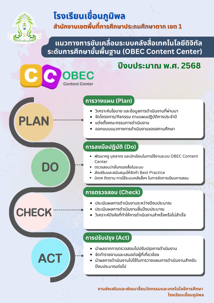 แนวทางการขับเคลื่อนระบบคลังสื่อเทคโนโลยีดิจิทัล ระดับการศึกษาขั้นพื้นฐาน (OBEC Content Center) ปีงบประมาณ พ.ศ. 2568