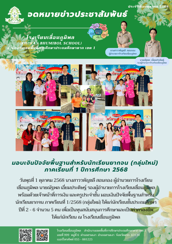 มอบเงินปัจจัยพื้นฐานสำหรับนักเรียนยากจน (กลุ่มใหม่) ภาคเรียนที่ 1 ปีการศึกษา 2568
