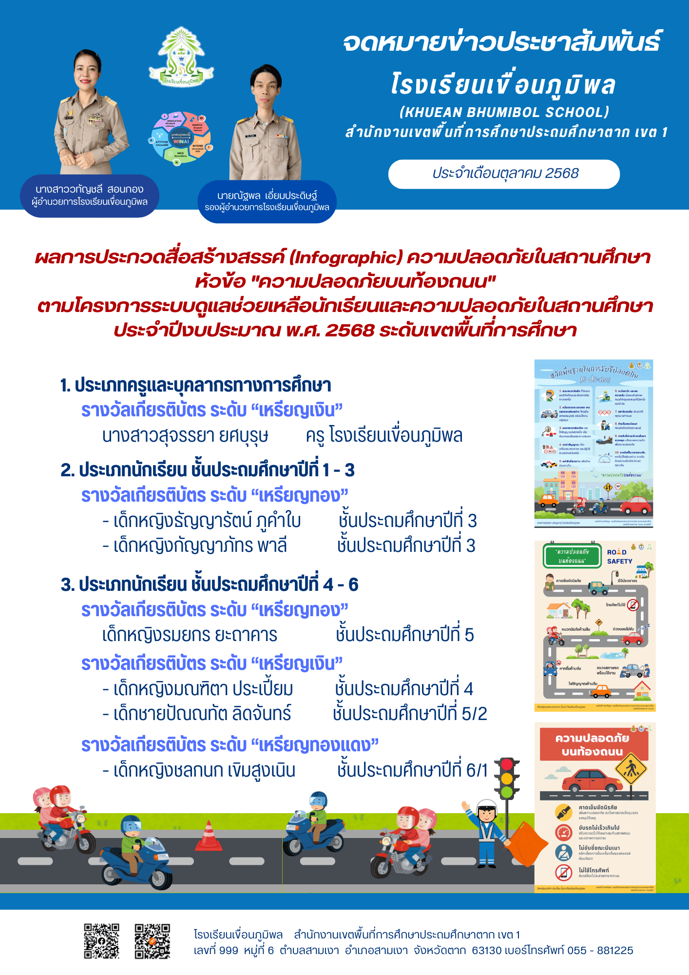 ผลการประกวดสื่อสร้างสรรค์ (Infographic) ความปลอดภัยบนท้องถนน ประจำปีงบประมาณ พ.ศ. 2568 ระดับเขตพื้นที่การศึกษา