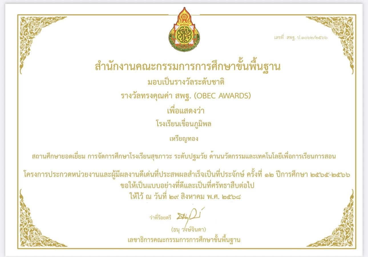รางวัล OBEC Award ระดับชาติ ครั้งที่ 12 ประจำปี 2565 - 2566
