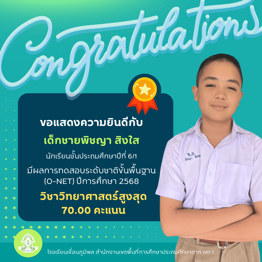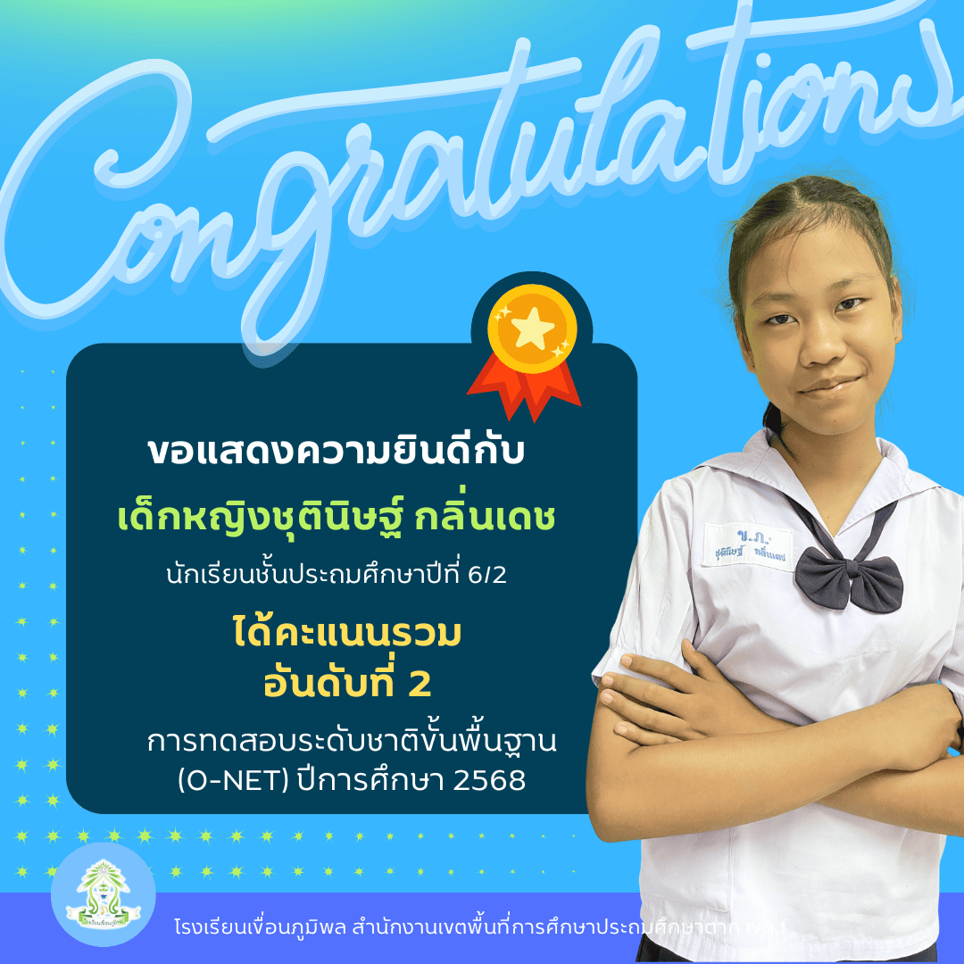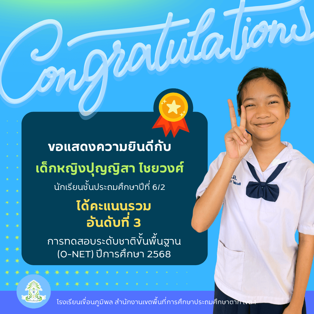 ผลการสอบ O-NET ชั้นประถมศึกษาปีที่ 6 ปีการศึกษา 2568