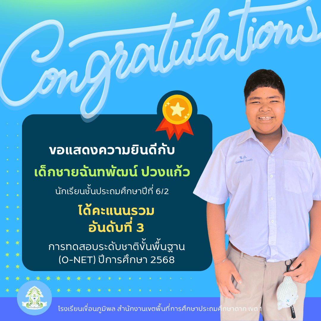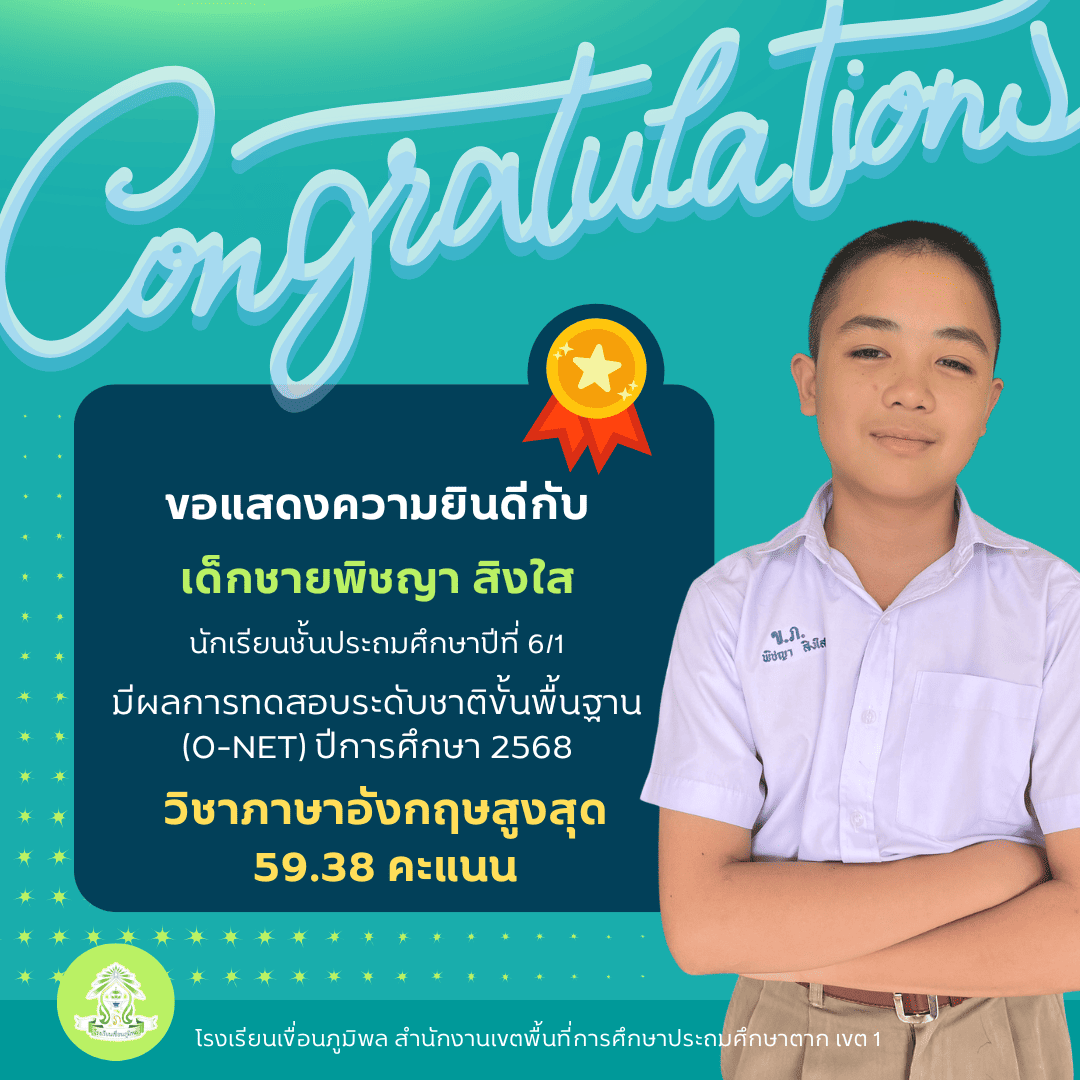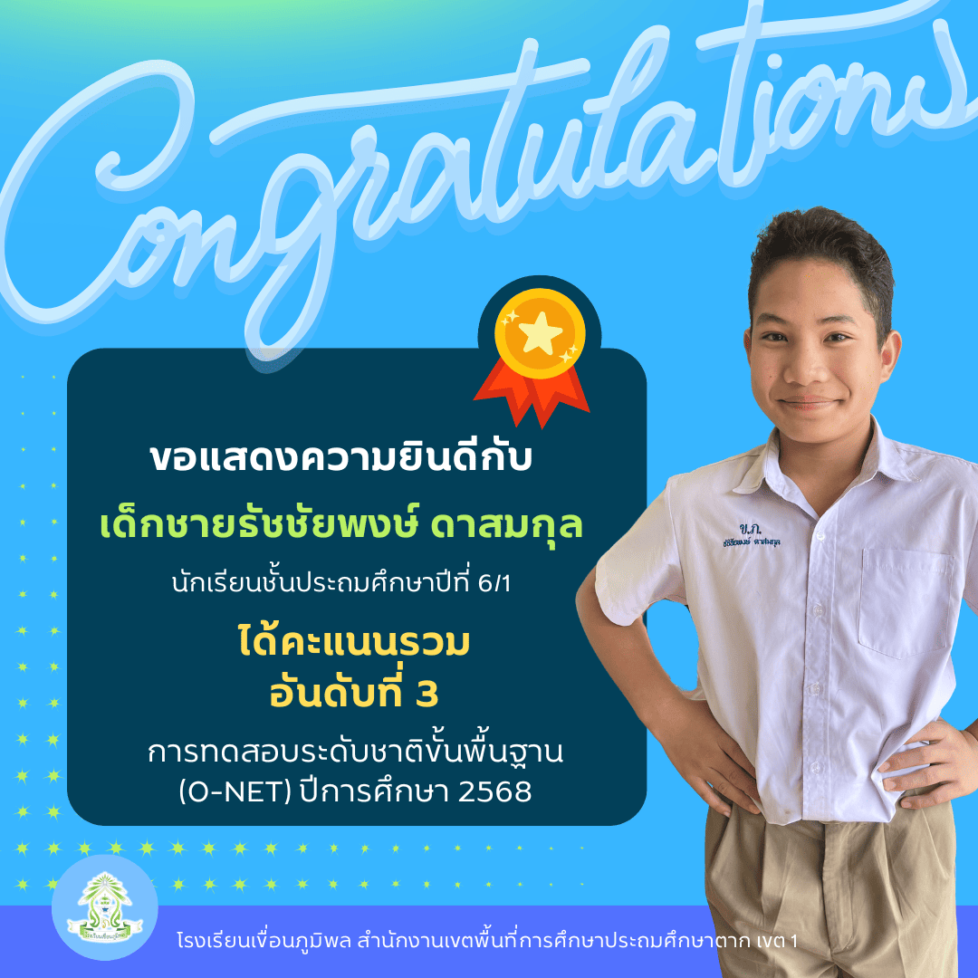 ผลการสอบ O-NET ชั้นประถมศึกษาปีที่ 6 ปีการศึกษา 2568