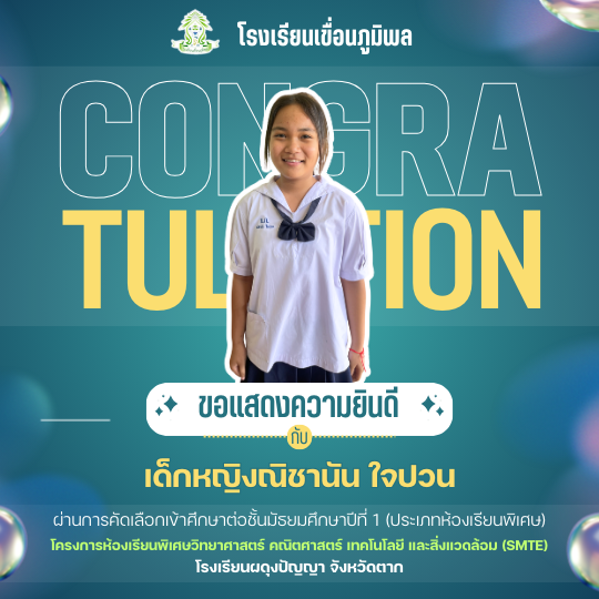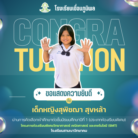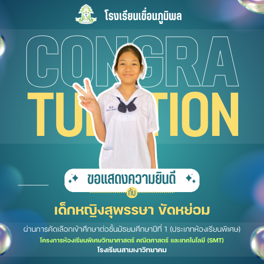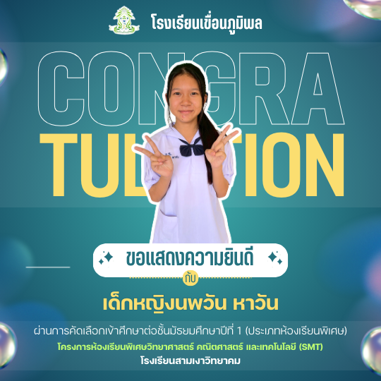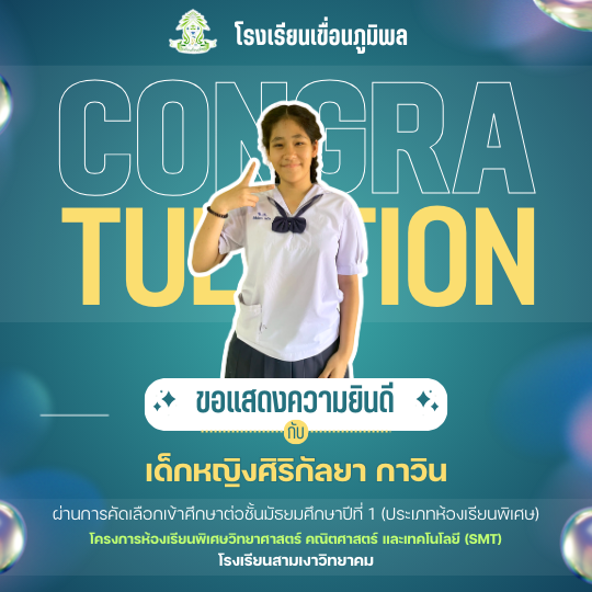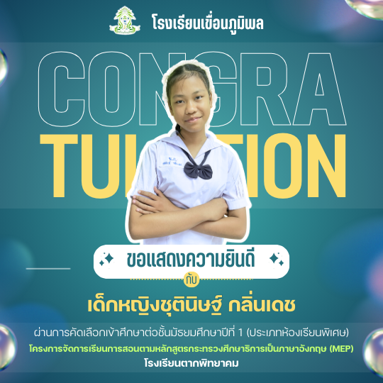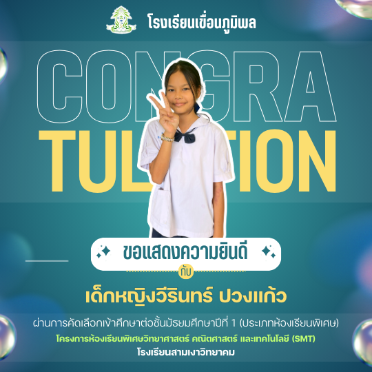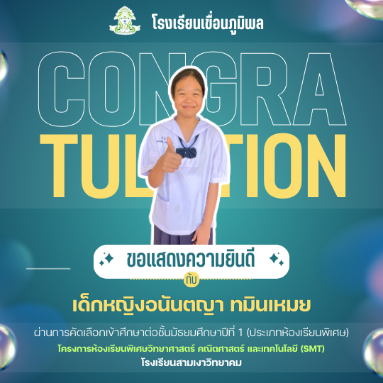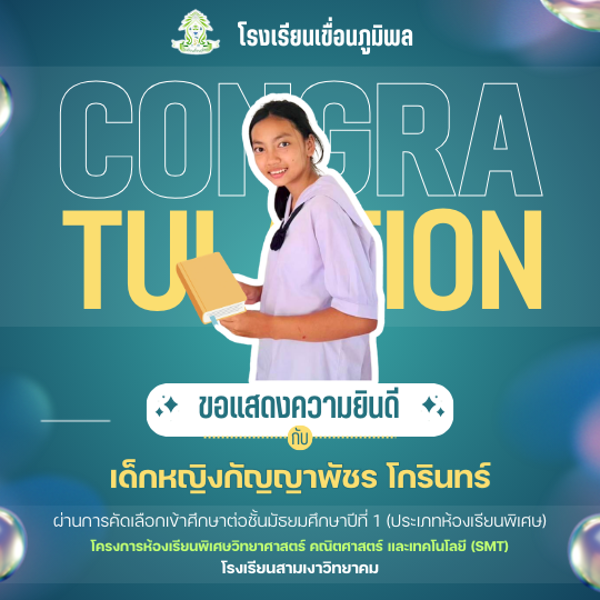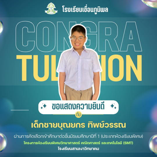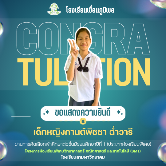 แสดงความยินดีกับนักเรียนชั้นประถมศึกษาปีที่ 6 (ปีการศึกษา 2568) ที่ผ่านการคัดเลือกเข้าศึกษาต่อชั้นมัธยมศึกษาปีที่ 1