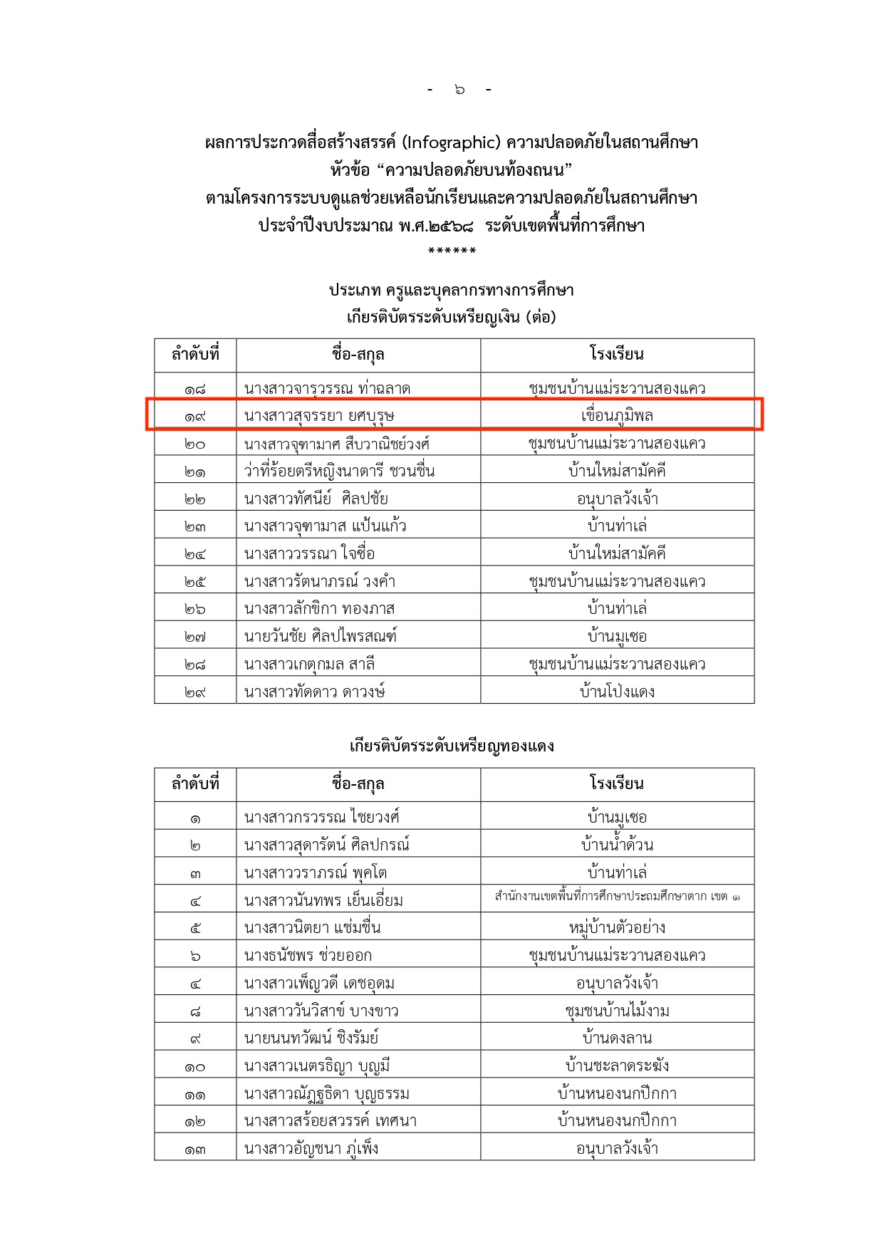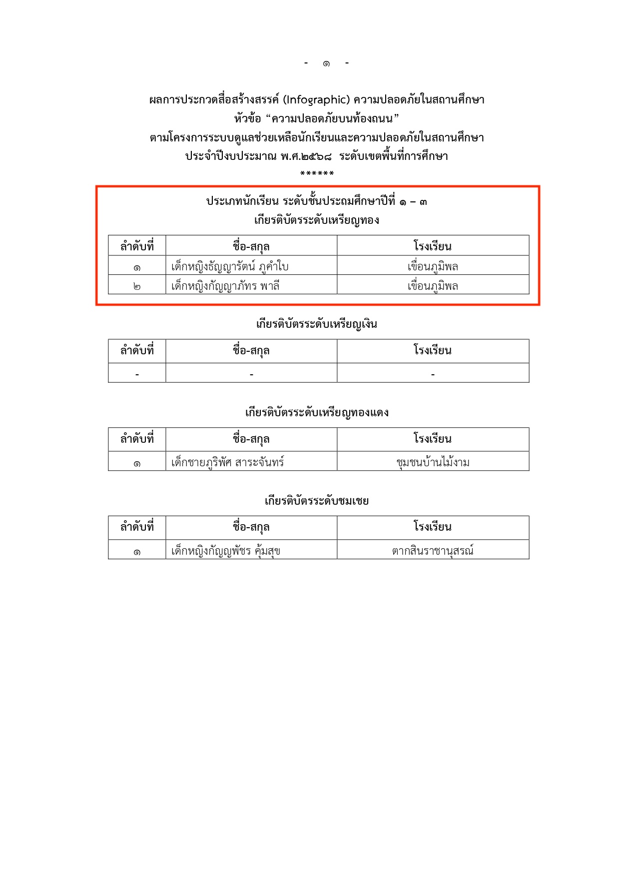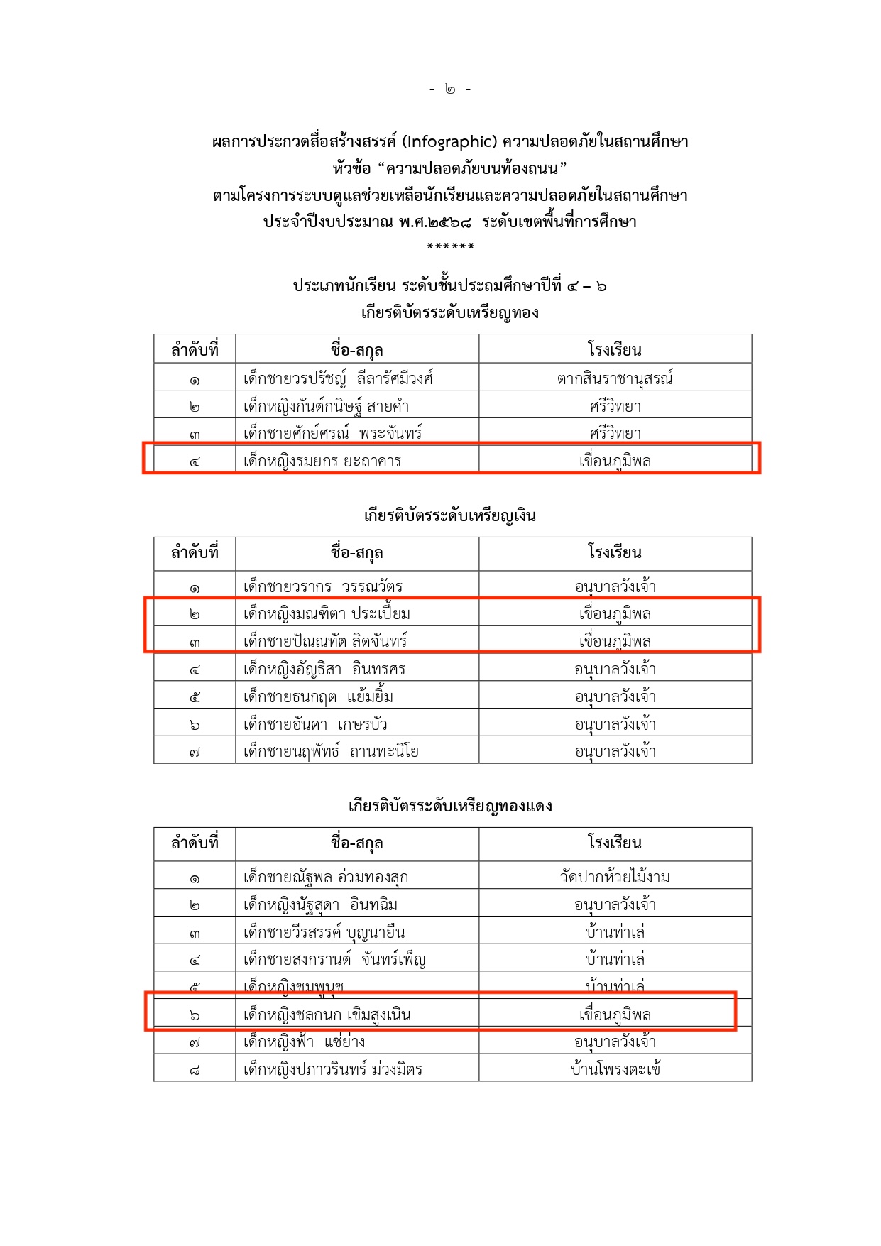 ผลการประกวดสื่อสร้างสรรค์ (Infographic) ความปลอดภัยบนท้องถนน ประจำปีงบประมาณ พ.ศ. 2568 ระดับเขตพื้นที่การศึกษา