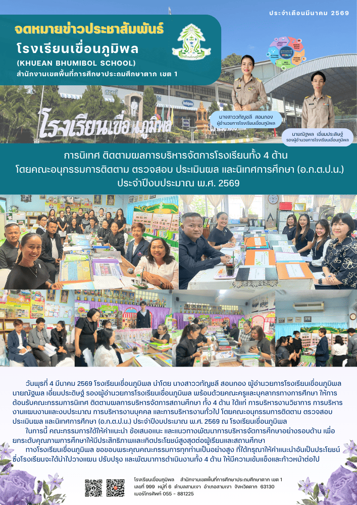 การนิเทศ ติดตามผลการบริหารจัดการโรงเรียนทั้ง 4 ด้าน โดยคณะอนุกรรมการติดตาม ตรวจสอบ ประเมินผล และนิเทศการศึกษา (อ.ก.ต.ป.น.) ประจำปีงบประมาณ พ.ศ. 2569