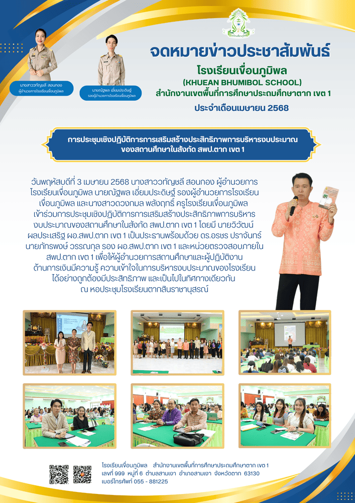 การประชุมเชิงปฏิบัติการการเสริมสร้างประสิทธิภาพการบริหารงบประมาณของสถานศึกษาในสังกัด สพป.ตาก เขต 1