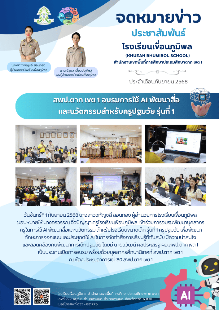 สพป.ตาก เขต 1 อบรมการใช้ AI พัฒนาสื่อ และนวัตกรรมสำหรับครูปฐมวัย รุ่นที่ 1
