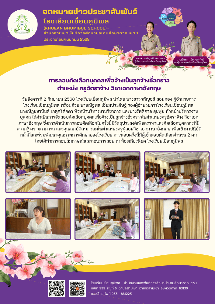 การสอบคัดเลือกบุคคลเพื่อจ้างเป็นลูกจ้างชั่วคราว ตำแหน่ง ครูอัตราจ้าง วิชาเอกภาษาอังกฤษ