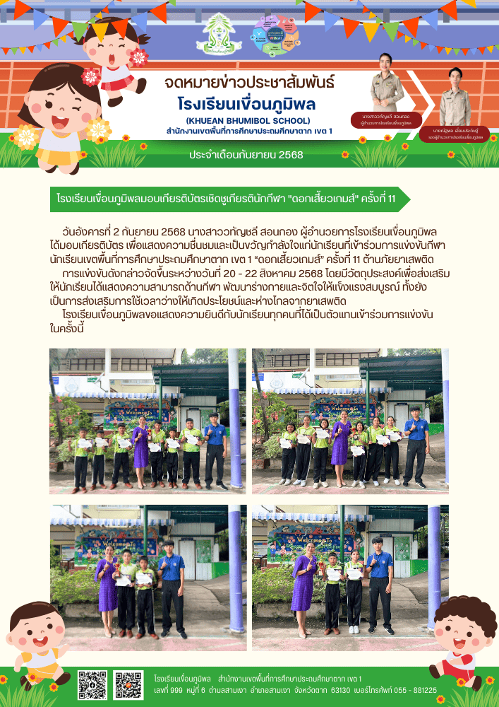 โรงเรียนเขื่อนภูมิพลมอบเกียรติบัตรเชิดชูเกียรตินักกีฬาดอกเสี้ยวเกมส์ ครั้งที่ 11