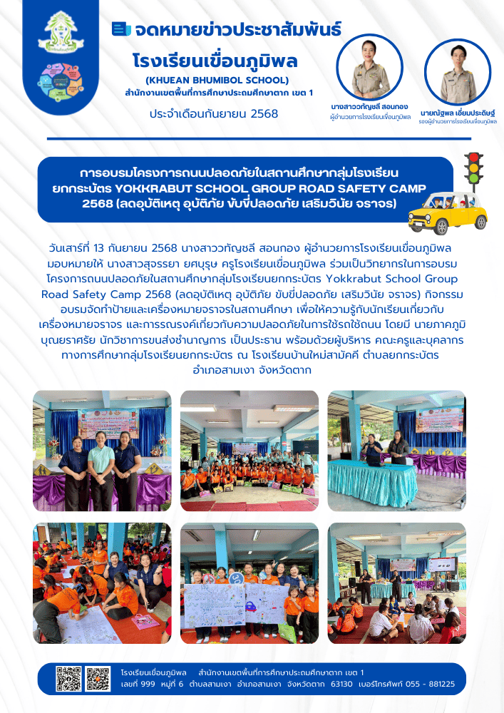 การอบรมโครงการถนนปลอดภัยในสถานศึกษากลุ่มโรงเรียนยกกระบัตร (ลดอุบัติเหตุ อุบัติภัย ขับขี่ปลอดภัย เสริมวินัย จราจร)