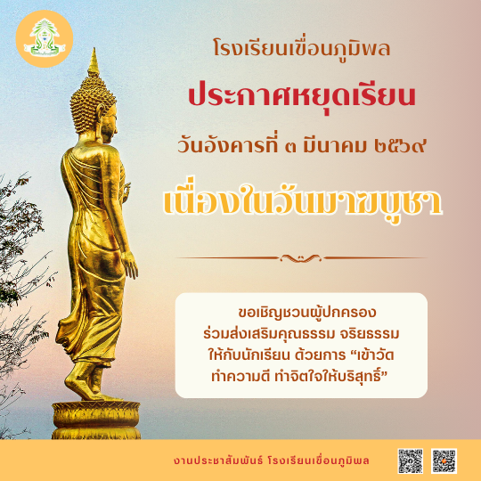 ประกาศหยุดเรียนเนื่องในวันมาฆบูชา