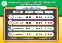 ผลการสอบ O-NET ชั้นประถมศึกษาปีที่ 6 ปีการศึกษา 2568