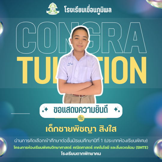 แสดงความยินดีกับนักเรียนชั้นประถมศึกษาปีที่ 6 (ปีการศึกษา 2568) ที่ผ่านการคัดเลือกเข้าศึกษาต่อชั้นมัธยมศึกษาปีที่ 1