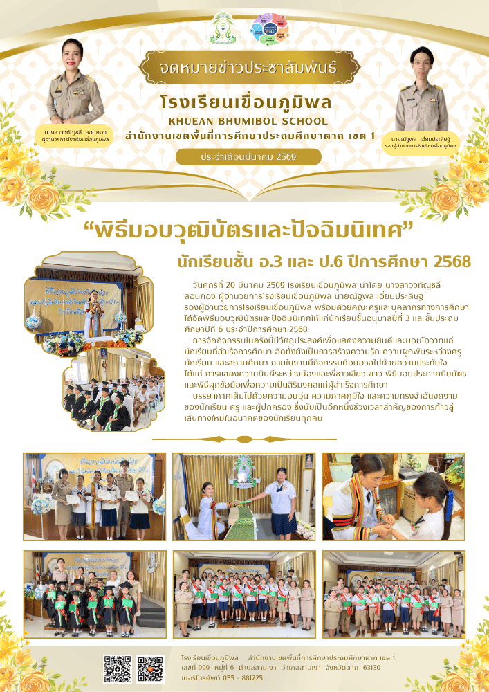 พิธีมอบวุฒิบัตรและปัจฉิมนิเทศ นักเรียนชั้น อ.3 และ ป.6 ปีการศึกษา 2568